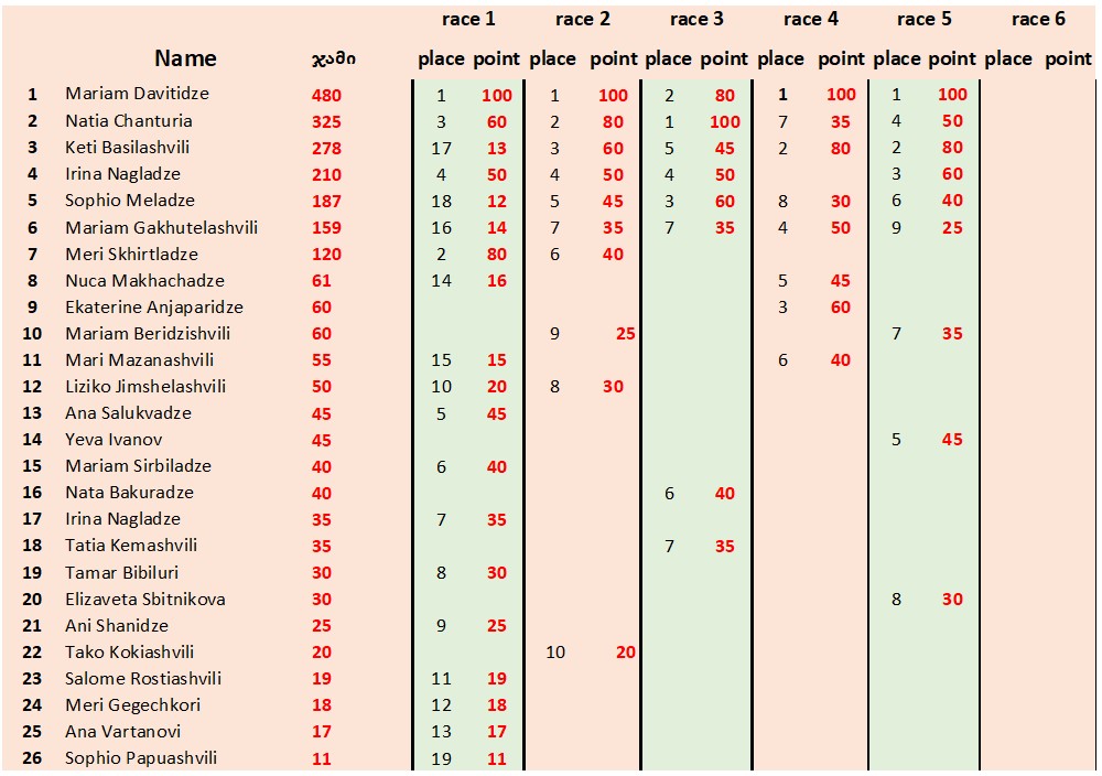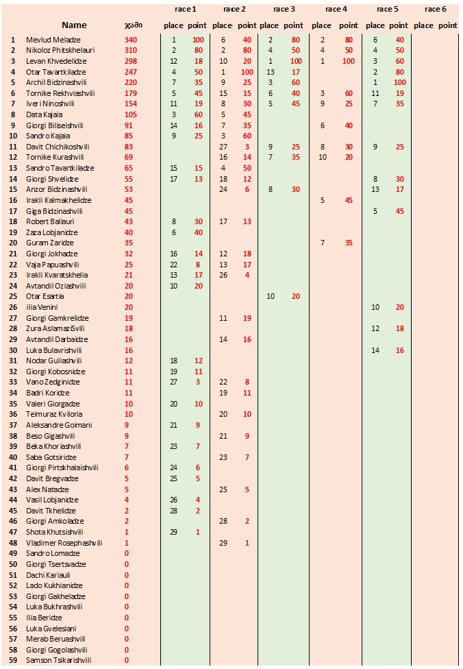 Georgian Drift Championship standings